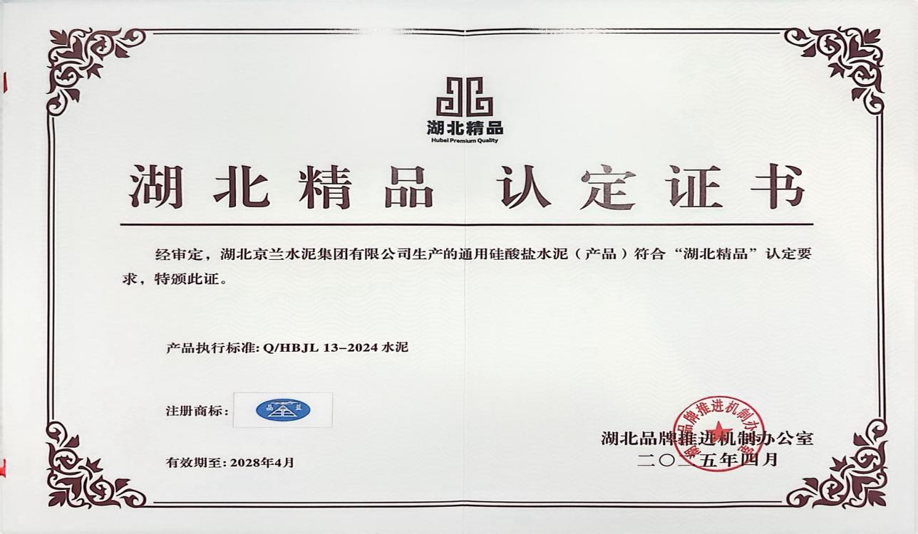 湖北京兰水泥集团是第二届“湖北精品”认定中唯一一家系列产品殊荣的水泥生产企业。此次认定的通过,标志着湖北京兰水泥集团生产的通用硅酸盐水泥产品在强度、耐久性、环保性等关键指标上均达到行业领先水平,成为湖北建材领域的标杆产品。