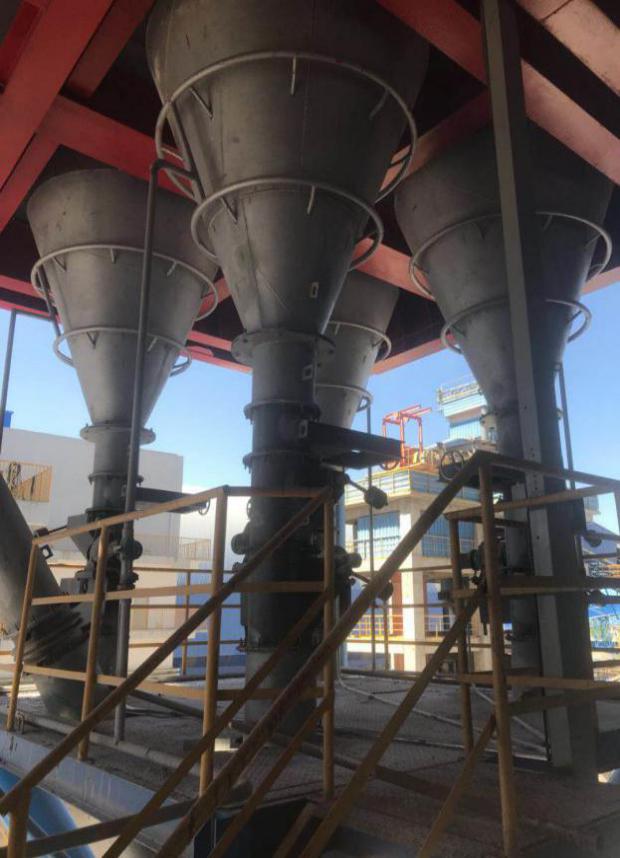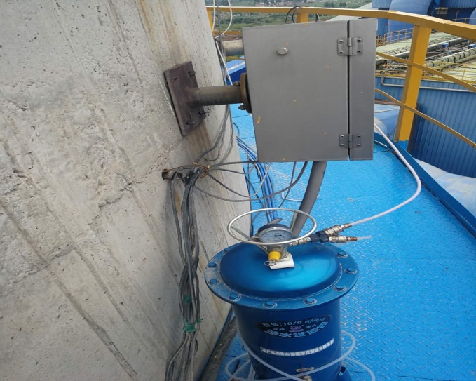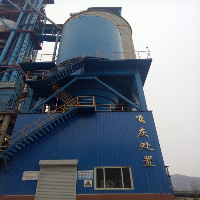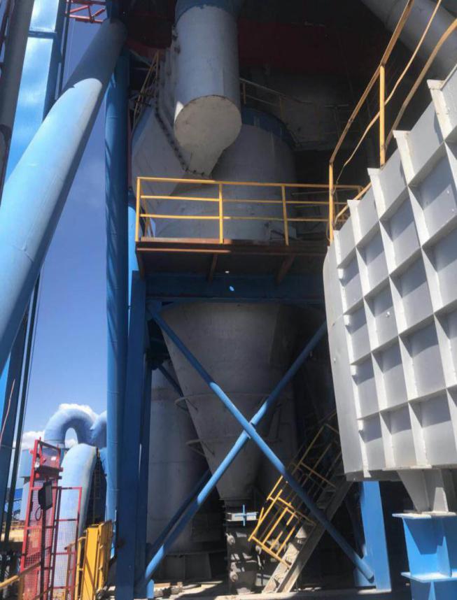 焚烧飞灰从厂外由专用密封车运输至水泥厂内,通过泵送至飞灰储仓内。仓内飞灰通过烟道输送至窑尾分解炉高温焚烧处置。为防止飞灰储仓内产生二次污染,在钢板仓顶设置一套布袋除尘器,布袋除尘器收集的粉尘落入飞灰储仓内,收尘飞灰再次入窑焚烧,没有粉尘外排。废气监测点位见图4-5,飞灰仓入回转窑废气治理设施现场照片如下图4-6所示。
