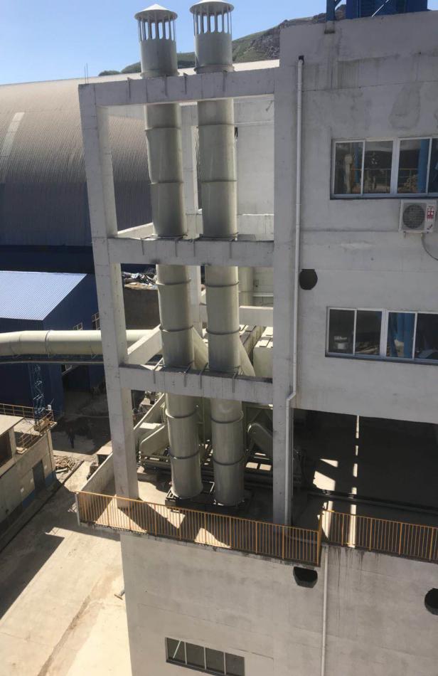 图4-4 回转窑窑尾废气治理设施及排放口现场照片
